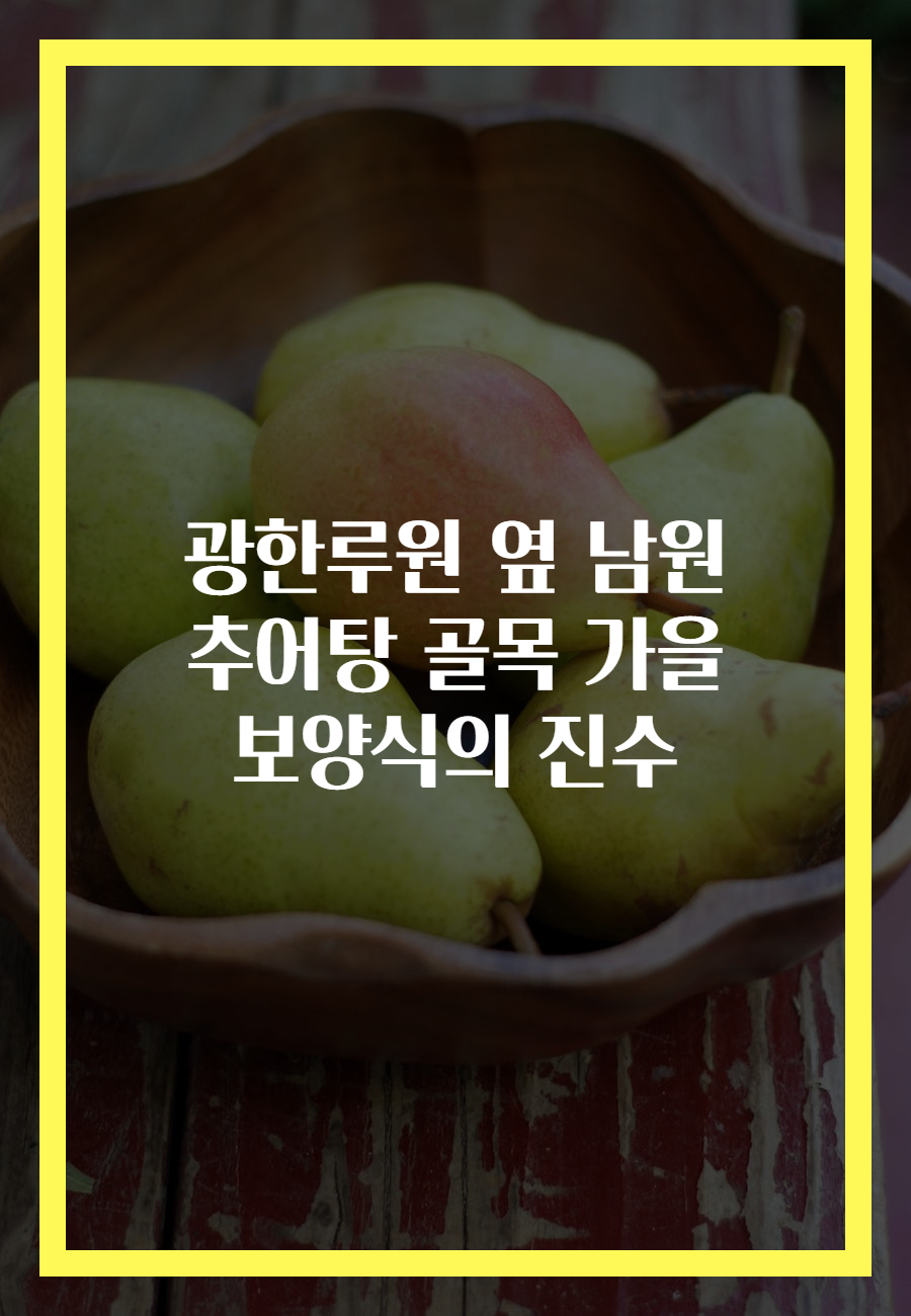 메타 설명: 남원의 추어탕 골목에서 가을 보양식의 진수를 경험하세요! 광한루원 옆에서 따뜻하고 깊은 맛의 추어탕을 즐기세요.