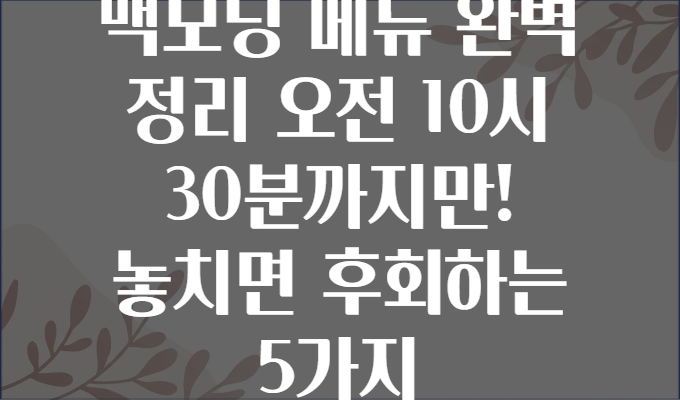 ✅ 맥모닝 메뉴 완벽 정리 - 놓치면 후회하는 5가지