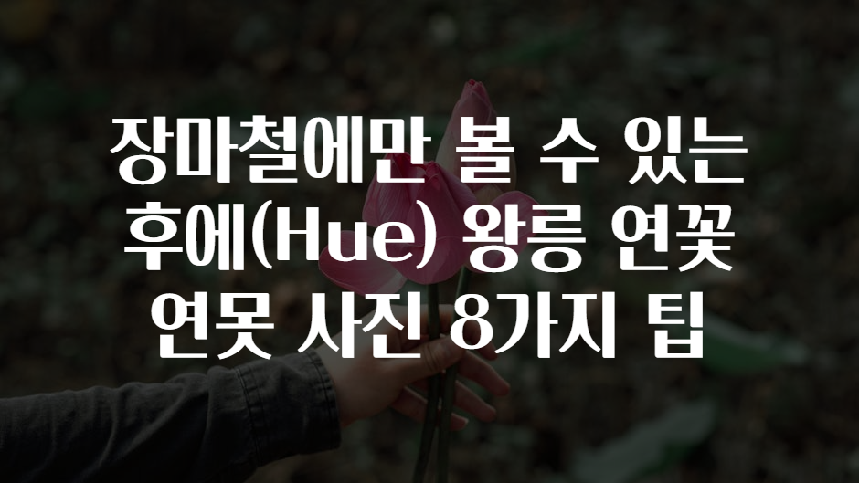 안녕하세요 여행과 사진을 사랑하는 여러분! 요즘 장마철이라 마음이 조금 우중충해지셨나요? 😢 그런데, 베트남 후에(Hue)의 왕릉 연못에서는 오직 장마철에만 만날 수 있는 신비로운 연꽃 풍경이 펼쳐집니다. 🌿🌺 후에 왕릉의 연꽃 연못에서 찍은 사진들은 언제 봐도 황홀하며, 장마철이라 더욱 특별한 느낌을 주죠!