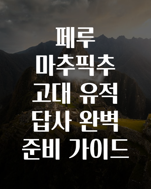 안녕하세요, 여행을 사랑하는 여러분! 혹시 꿈꾸던 여행지 리스트에 '마추픽추'가 있을까요? 🏞️✨ 하지만 막상 준비하려면 어디서부터 시작해야 할지 막막하셨던 적 있나요? 🤔 걱정 마세요! 오늘은 페루의 상징이자 세계문화유산인 마추픽추를 탐험하는 데 꼭 필요한 모든 정보를 상세하게 정리한 완벽 가이드를 밝혀드릴게요. 🚀🎒